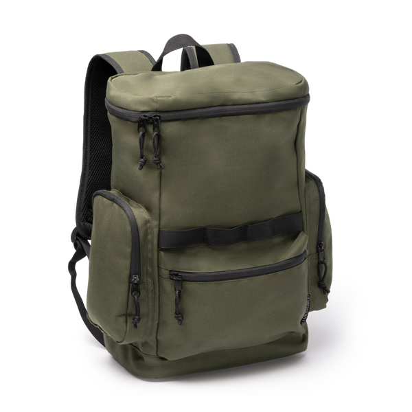 Mochila de Viagem Cameron. Mochila fabricada em RPET 600D com abertura na parte superior. Possui bolsos laterais e frontais externos com fechos de correr e puxadores em preto. Para além de diferentes pontos de fixação para fixar diferentes acessórios. Possui um compartimento interior com elástico para transportar dispositivos até 12″. Costas e pegas acolchoadas para maior conforto. Medidas: [33cm/40cm/17cm]