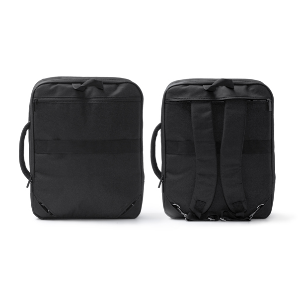 Mochila de viagem Executiva Warka. Mochila de viagem executiva em poliéster 300D. Dois bolsos acolchoados principais com compartimentos interiores e bolsos ideais para portáteis ou tablets. Alças para os ombros e costas acolchoadas. Faixa com bolso oculto e alça do carrinho. Medidas: [32cm/41cm/14cm]
