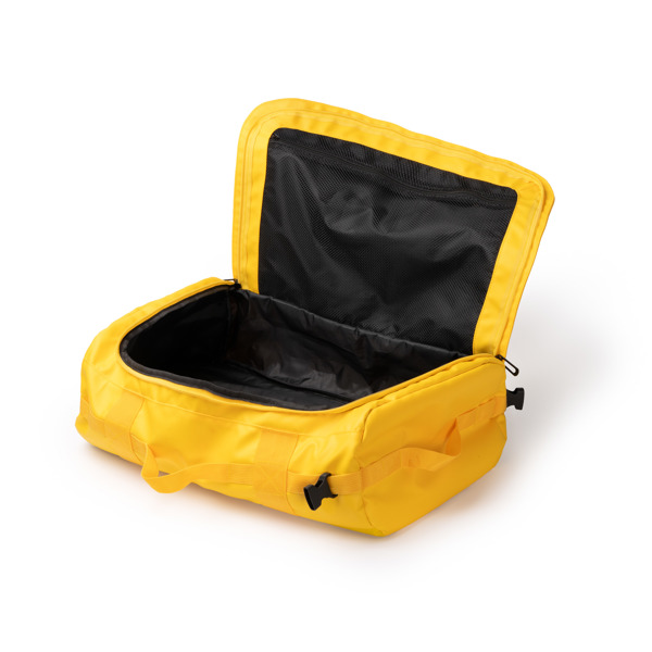 Mochila Para Entregas Lacroix. Saco mochila multifunções em couro PU e poliéster 600D. Possui um compartimento principal espaçoso com um bolso em rede de grandes dimensões com fecho de correr. Inclui também correias de fixação para manter os objetos no seu interior de forma segura. Inclui um grande bolso frontal com fecho de correr. As alças de ombro podem ser guardadas num compartimento traseiro dedicado com fecho de correr, tornando-o uma opção versátil, uma vez que pode ser convertido numa mala de viagem utilizando as pegas de transporte de cada lado. Costas e alças de ombro acolchoadas.. Medidas: [30cm/50cm/18cm]