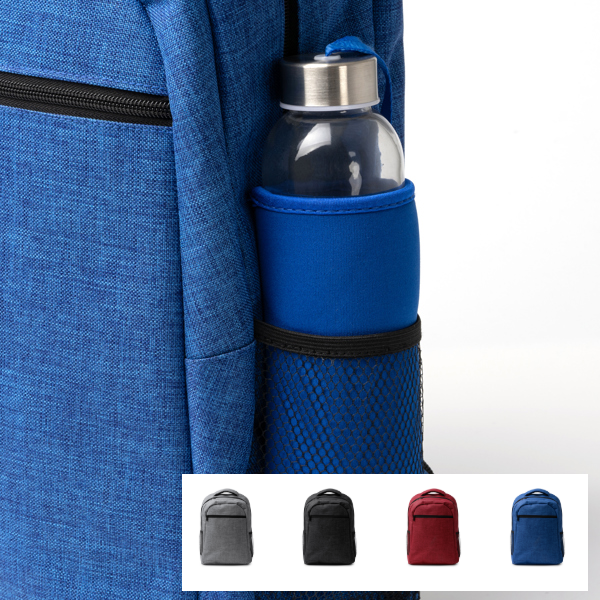 Mochila RPET 600D Megan. Mochila em RPET 600D com acabamento marmoreado. Pegas e costas almofadadas. Grande compartimento interior e bolso para um computador portátil de 15”. Bolso exterior à frente e bolsos laterais. Capacidade: 20 L. Medidas: [32cm/42cm/15cm]